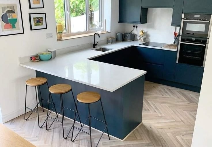 Es una opción muy utilizada cuando no hay suficiente espacio para una isla, ya que permite conseguir una distribución parecida sin necesidad de tanto espacio libre.